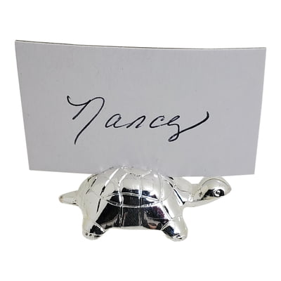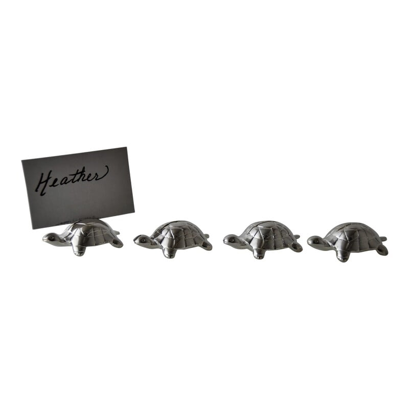 Set/4 Tortoise place card holders with cards Silver Plate. SKU #: KMJA104B.