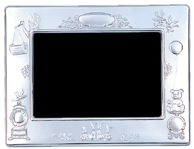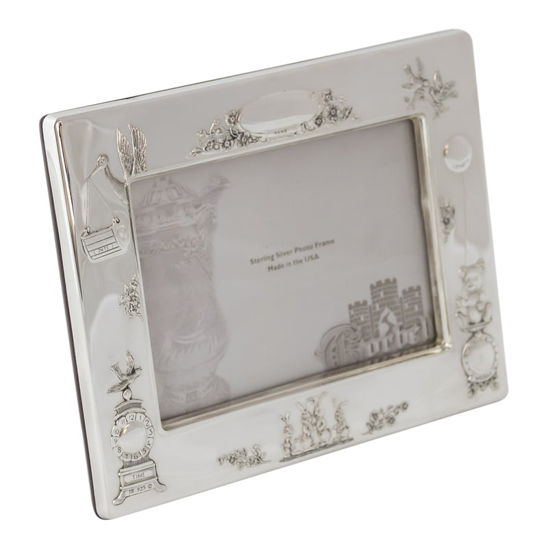 Sterling Silver Baby Record Frame with Cherry Wood Back 3.5 x 5. SKU #: J160W.