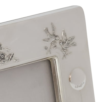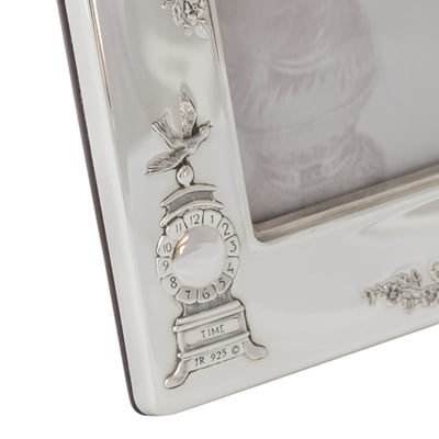 Sterling Silver Baby Record Frame with Cherry Wood Back 3.5" x 5"