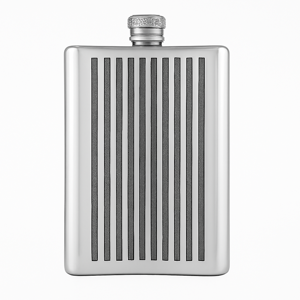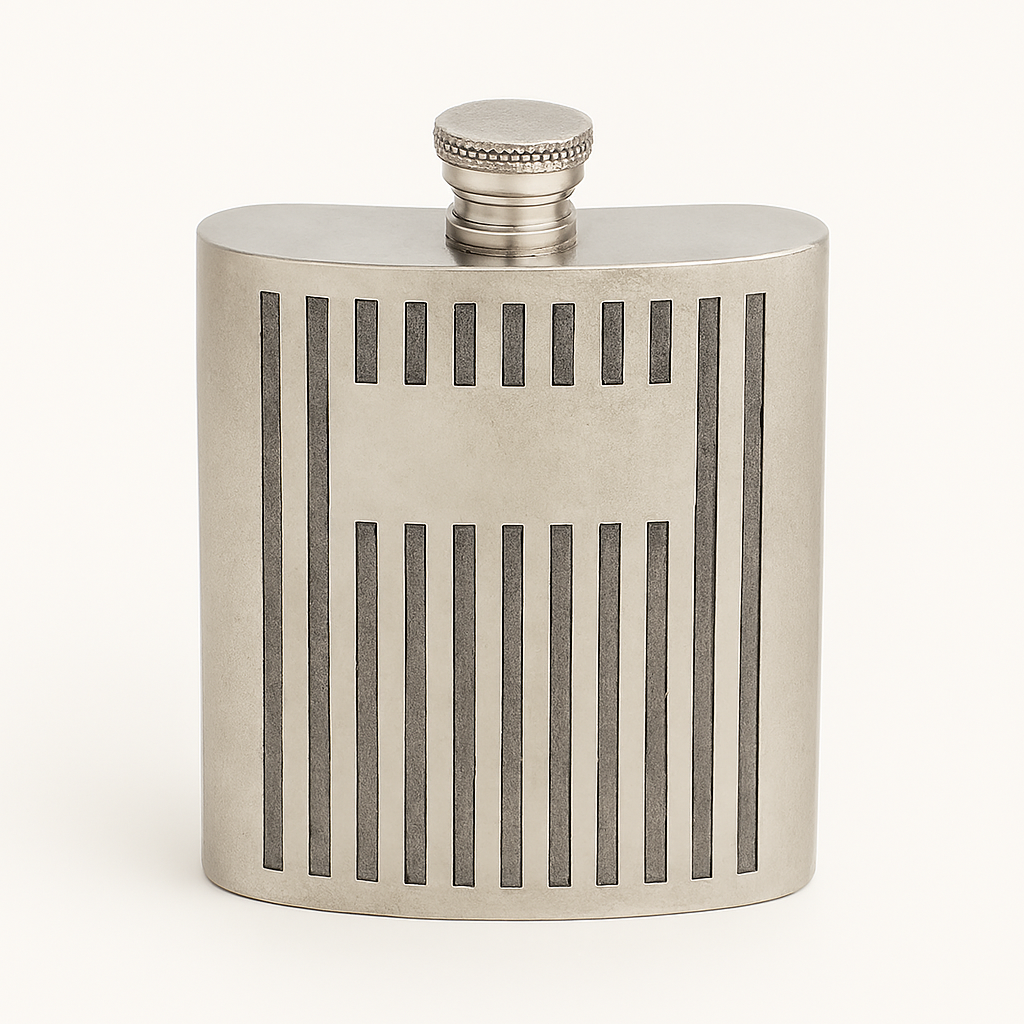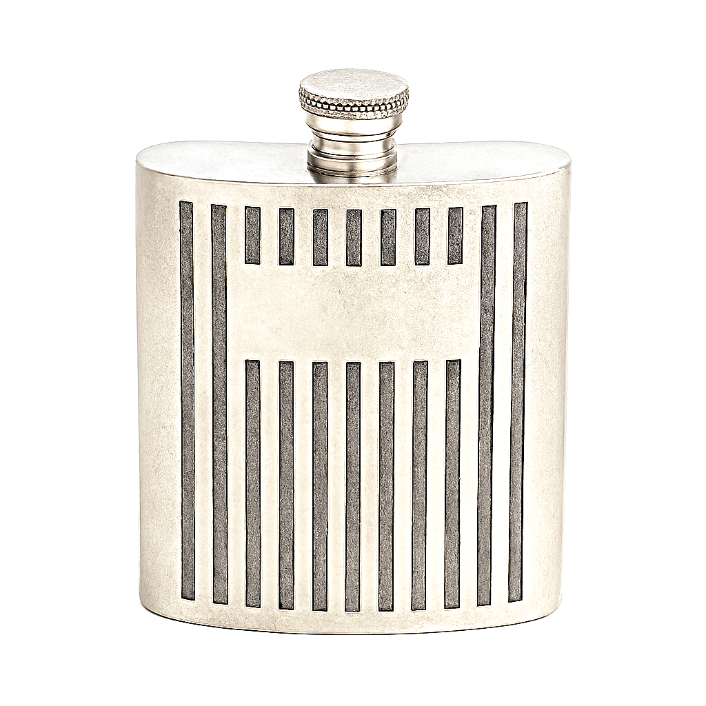 Ribbed Design Flask With Cartouche 6oz Pewter Boxed With Pouch (COMING NOVEMBER 15TH)