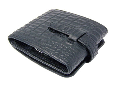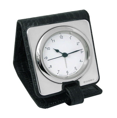 Sterling Silver/Leather Traveling Clock. SKU #: CLK421.