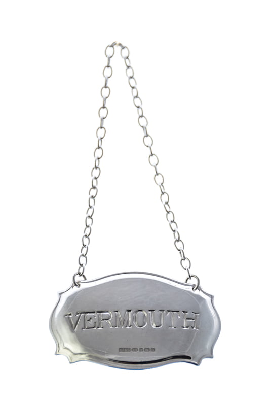 Decanter Label Chippendale Design VERMOUTH Sterling. SKU #: C1259HMSVERMOUTH.