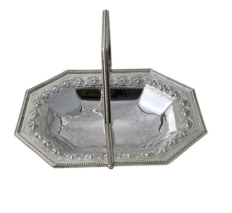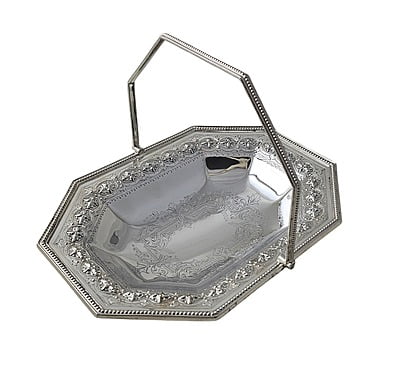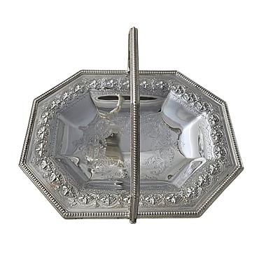 Basket Octagonal ,Engraved,Footed English Silver Plate c 1875. SKU #: ANT2610.
