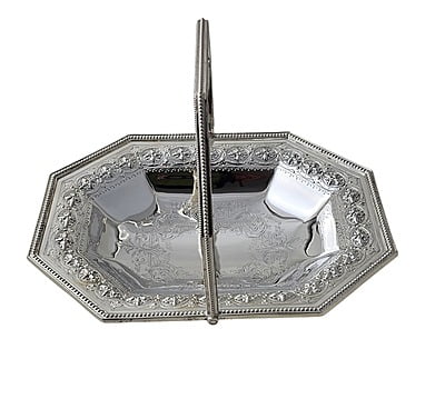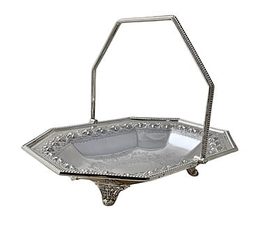 Basket Octagonal ,Engraved,Footed English Silver Plate c 1875