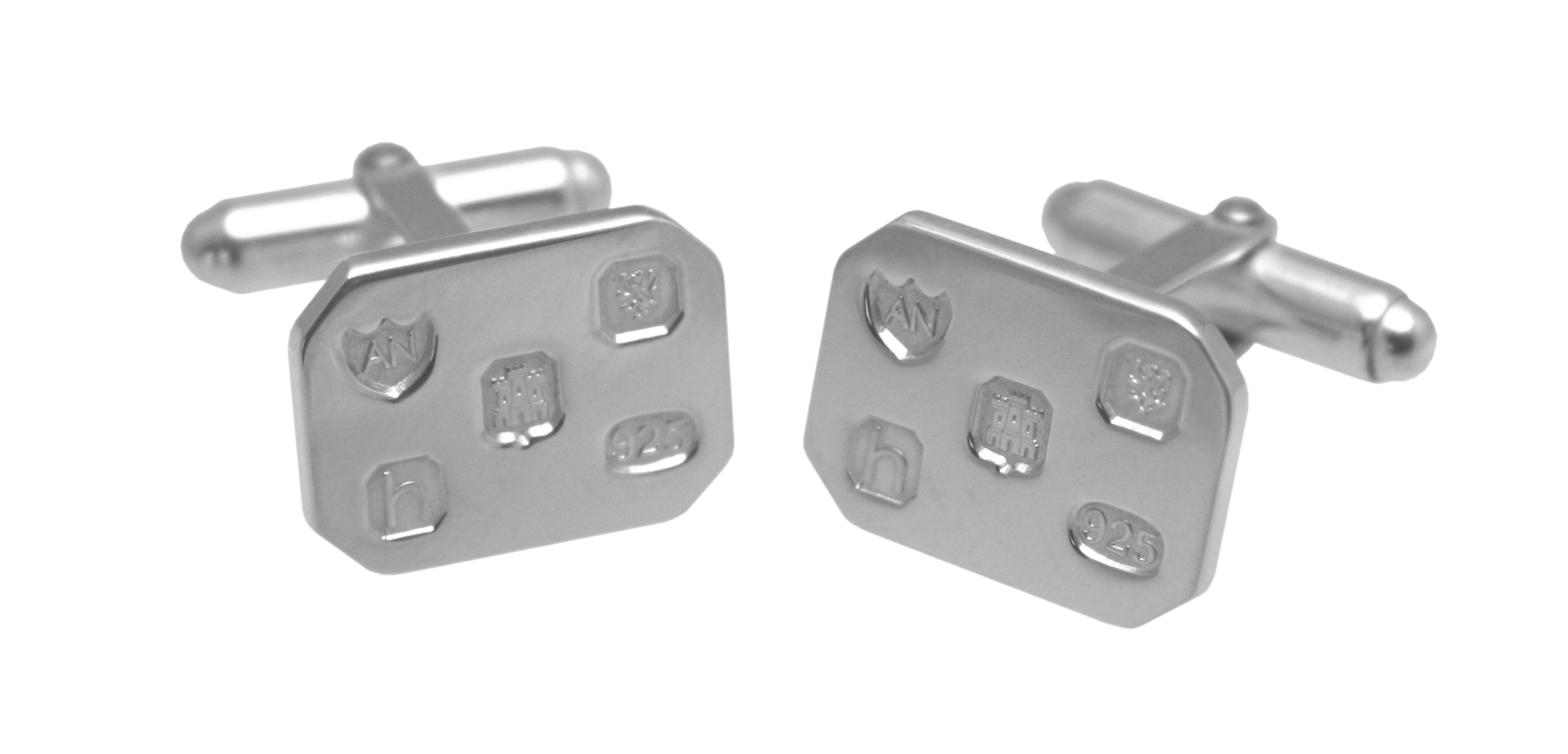 SILVER CUFFLINKS-Plain Sterling Silver Rectangular Shape with Cut Corners and English Hallmarks. SKU #: CU532.