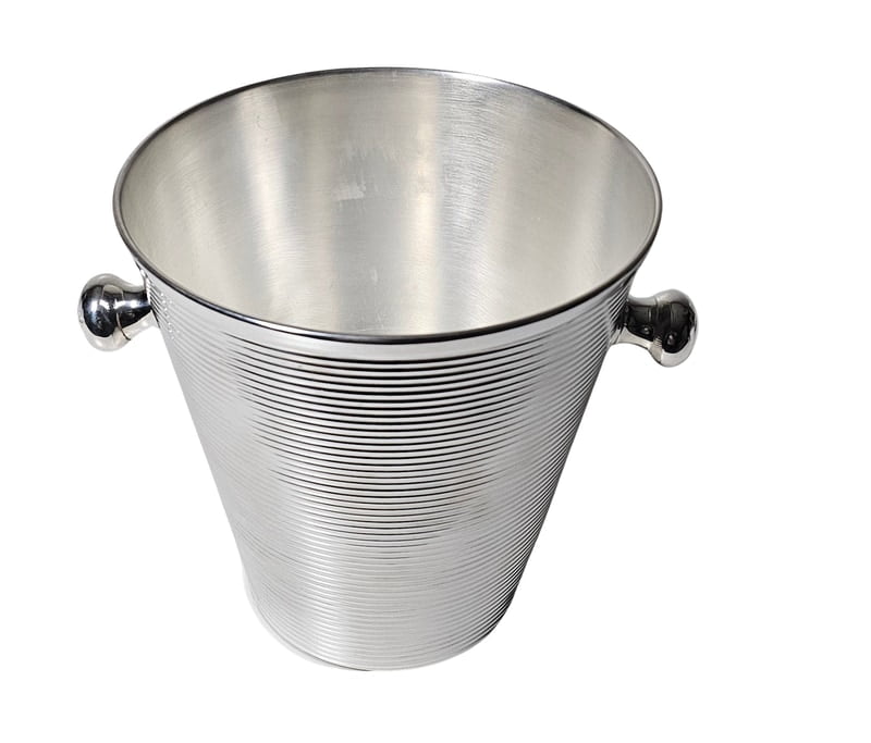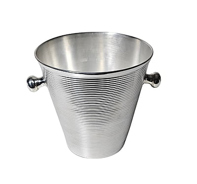 Add a touch of elegance to your barware collection with this stunning silver-plated ice bucket. Featuring a full ribbed design, this piece combines both style and functionality. The ball handles provide a unique and practical touch, making it easy to carry and serve.