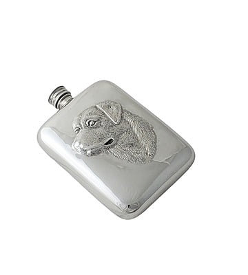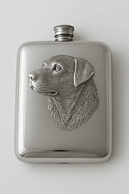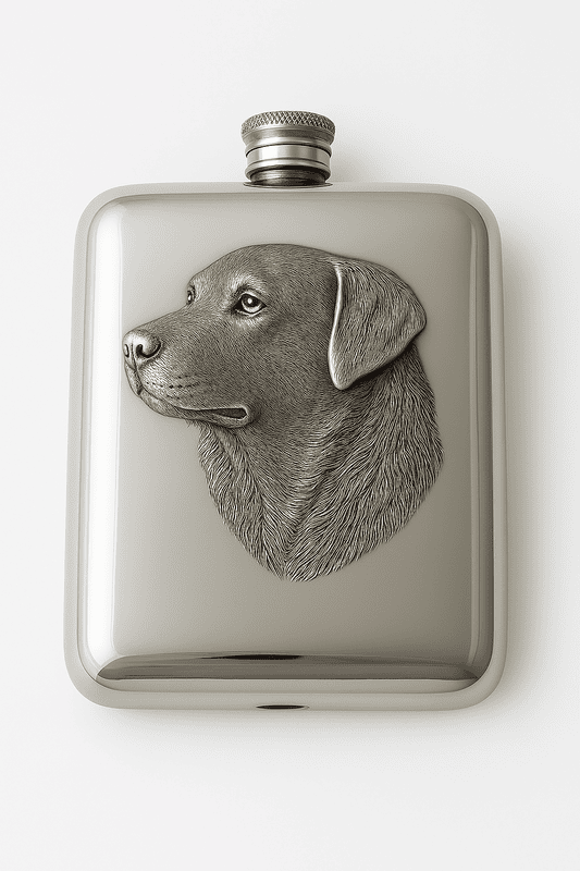 Labrador Head 6oz Pewter Flask with Pouch and Presentation Box Celebrate timeless charm and refined heritage with this exquisite 6oz pewter flask, crowned with a finely sculpted Labrador head. Crafted for both collectors and connoisseurs, its tactile weight and satin finish evoke traditional British craftsmanship at its finest.