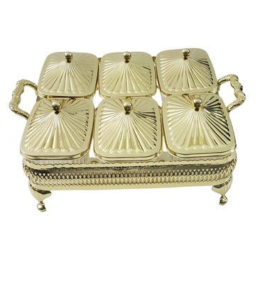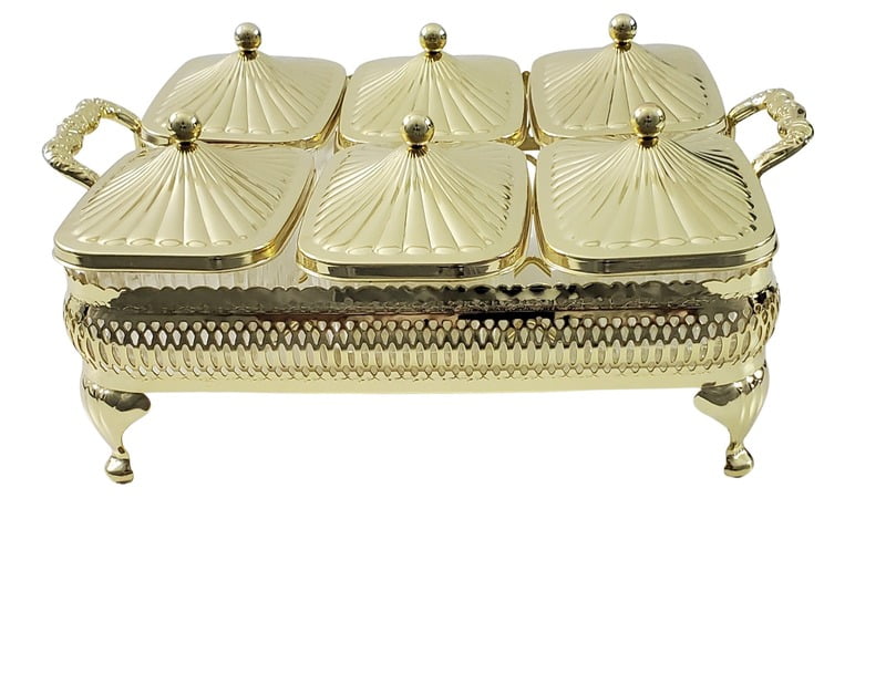 6 Pce Oblong Party Set. Measurements: 12" x 10 1/2" (Gold Finish)
