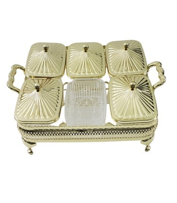 | Queen Anne 6 Pce Oblong Party Set. English Silver Plate Tarnish Resistant (Gold Finish) |