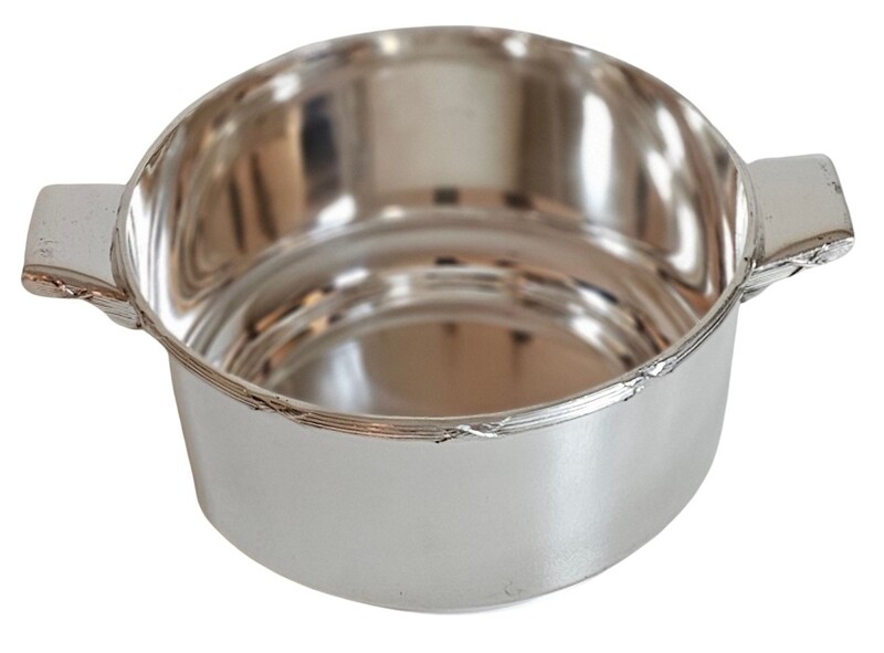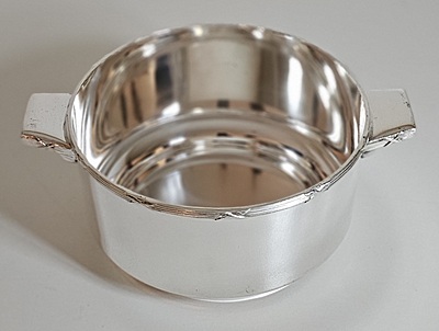 Heavy Reed & Ribbon Border Hotel Silver Bowl with Quaich-Style Handles