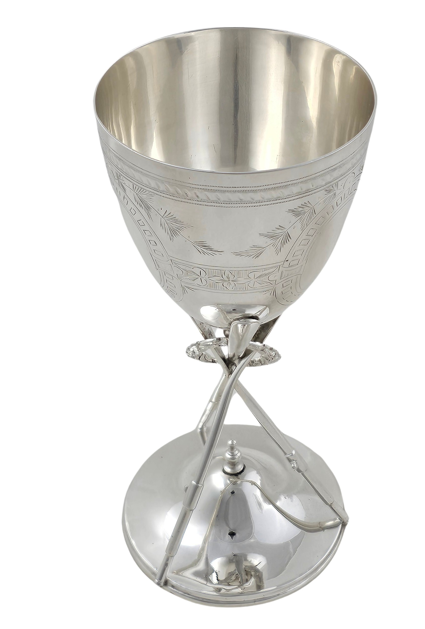 Goblet Hand Engraved With Cartouche 8" with Oars & Wreath English Silver Plate c.1860. SKU #: ANT2817.