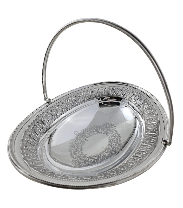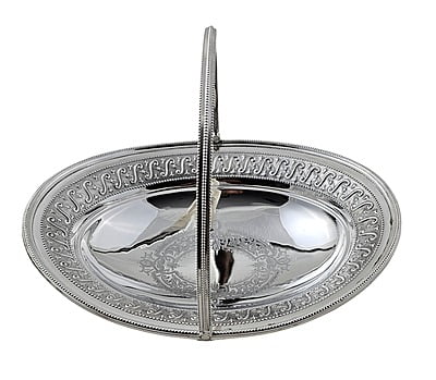Basket Oval Engraved & Embossed English Silver Plate c 1880. SKU #: ANT2616.