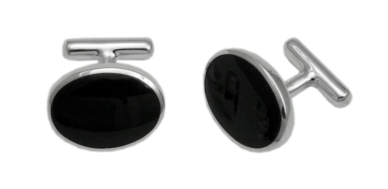 Cufflinks Oval Shape Black Onyx Design English Sterling Silver. SKU #: CU436.