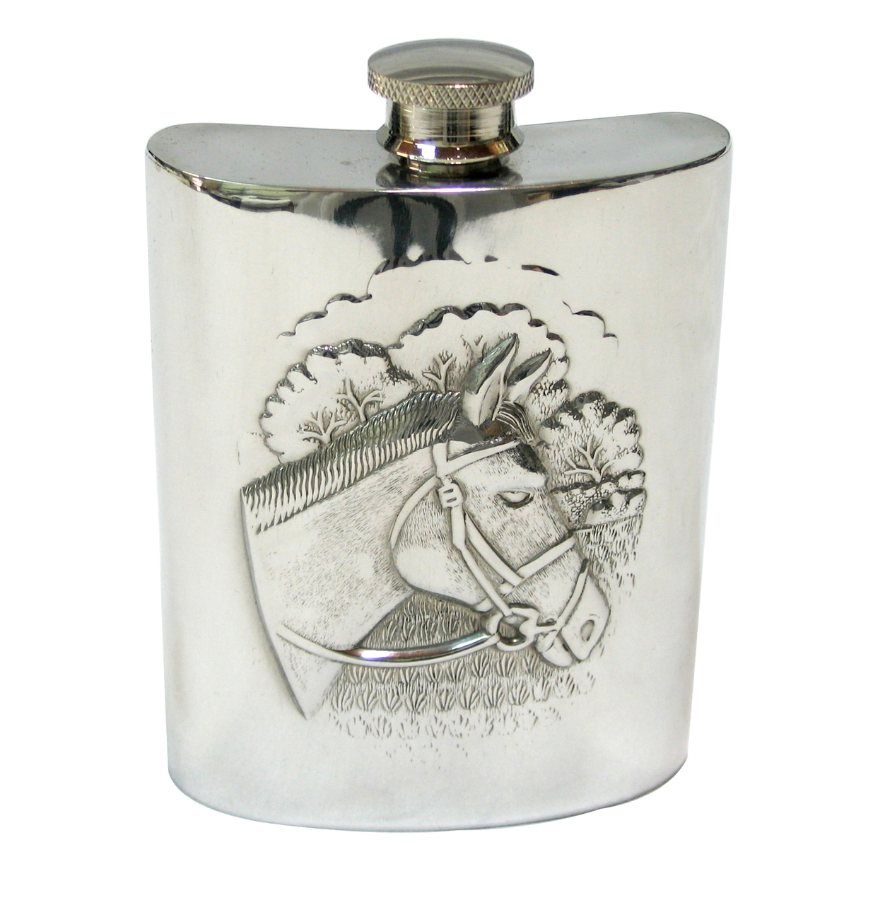 Horse Head Flask English Pewter 6 oz. SKU #: EB30306.