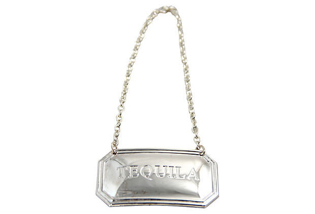 Decanter Label, Silver Plate, Cut Corner, Tequila. SKU #: C1260TEQUILA.