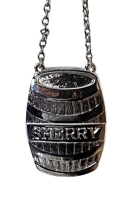 Decanter Label 1.5" x 2" Barrel Shape Silver Plate, Sherry. SKU #: C563SHE.