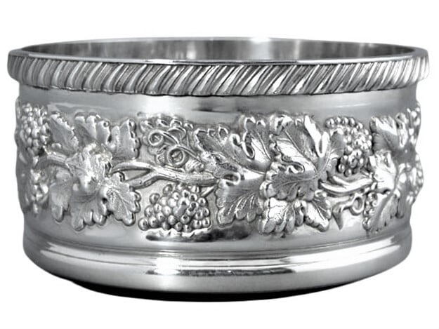 Wine Coaster 4.5" Embossed Grape Design Silver Plate. SKU #: C926.