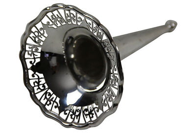 Each trumpet for this epergne has piercing that appears on the base. Maker's markings for George Wish, silversmith Sheffield England are on the underside. Made in England c.1880 of silver plate.