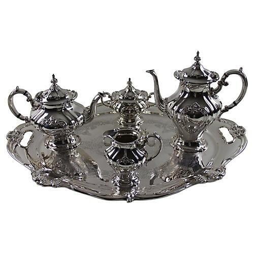 Tea & Coffee Set With Matching Tray American c.1950 (ESTATE PURCHASE ORIGINAL). SKU #: xx.
