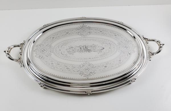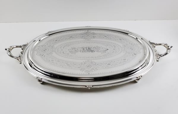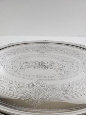 Extra Large Engraved 35" x 21.5" Tray English Silver Plate c.1865