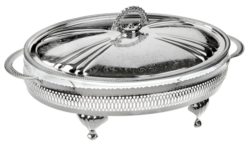 Medium Oval Casserole/Lid 6"h x 8 1/2"w x 13 1/8"l English Silver Plate (Tarnish Resistant) |