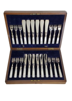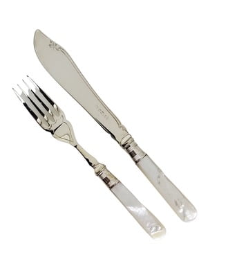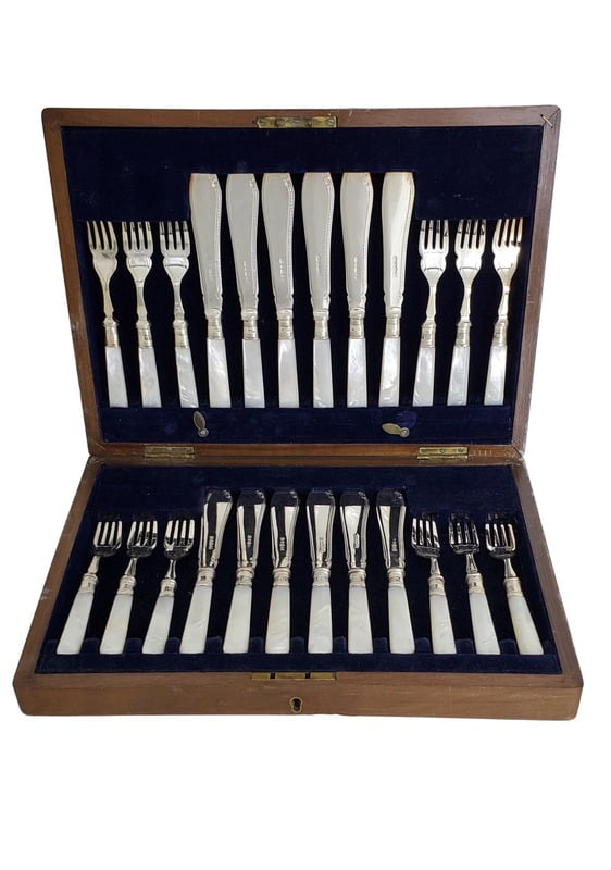 Set/12 Fish Eaters Mother of Pearl/English Silver Plate c.1870