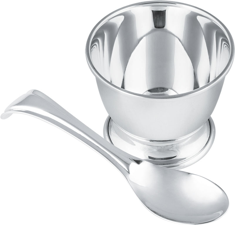 Child's Egg Cup ( 1.5" x 1 7/8") & Silver Plate Spoon ( 3 7/8") Set English Sterling Silver. SKU #: BOX147.