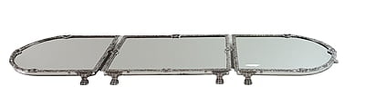 A 3 section silver plated plateau is a type of serving tray that consists of three separate pieces that can be arranged in different ways. It is usually made of a base metal with a layer of silver applied , and often has a mirrored base to reflect light and enhance the presentation of food or Candelabra, Epergne,s, Centerpieces ,Vases used to elaborate the item It is a great addition to any formal dining setting or special occasion.