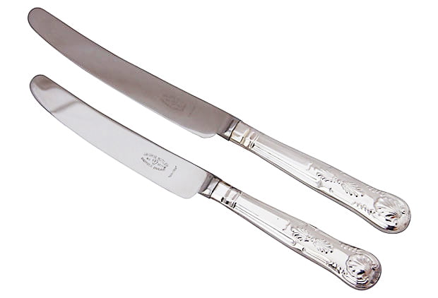 King's Pattern Dinner & Dessert Knives, English Silver Plate 24 Pcs. SKU #: A6851.
