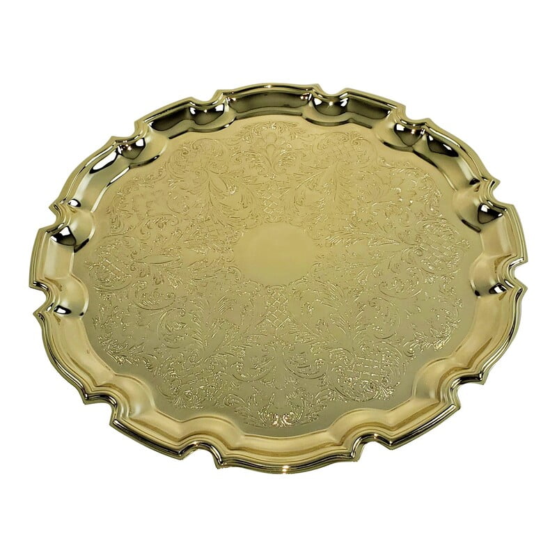 Medium Chippendale Tray 9 1/2"dia x 1/2"h English Silver Plate Tarnish Resistant (Gold Finish). SKU #: Q4/6181.