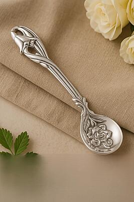 Elevate your table setting or collection with this exquisite Victorian-style salt or mustard spoon, masterfully crafted in English sterling silver. Measuring 2.5 inches, it features a graceful Art Nouveau design with flowing floral motifs and sculpted detailing along the handle and bowl. The intricate craftsmanship evokes the romantic elegance of the late 19th century, making it a perfect accent for formal dining, gifting, or heritage display. Whether used for serving gourmet salts, mustards, or simply admired for its ornamental beauty, this spoon embodies timeless sophistication and artisanal charm.