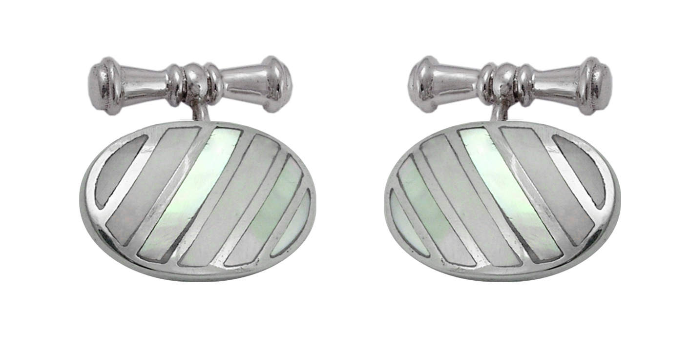 Sterling Silver and Mother of Pearl Striped Oval Cufflinks