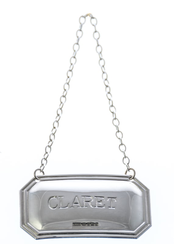 CLARET Cut Corner Hallmarked Silver Decanter Label..