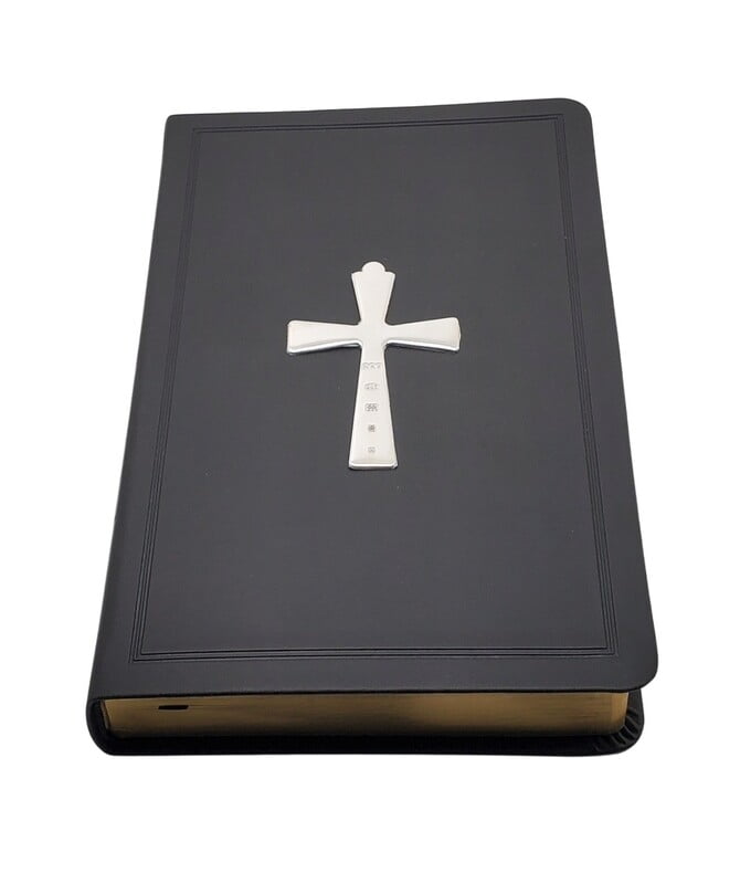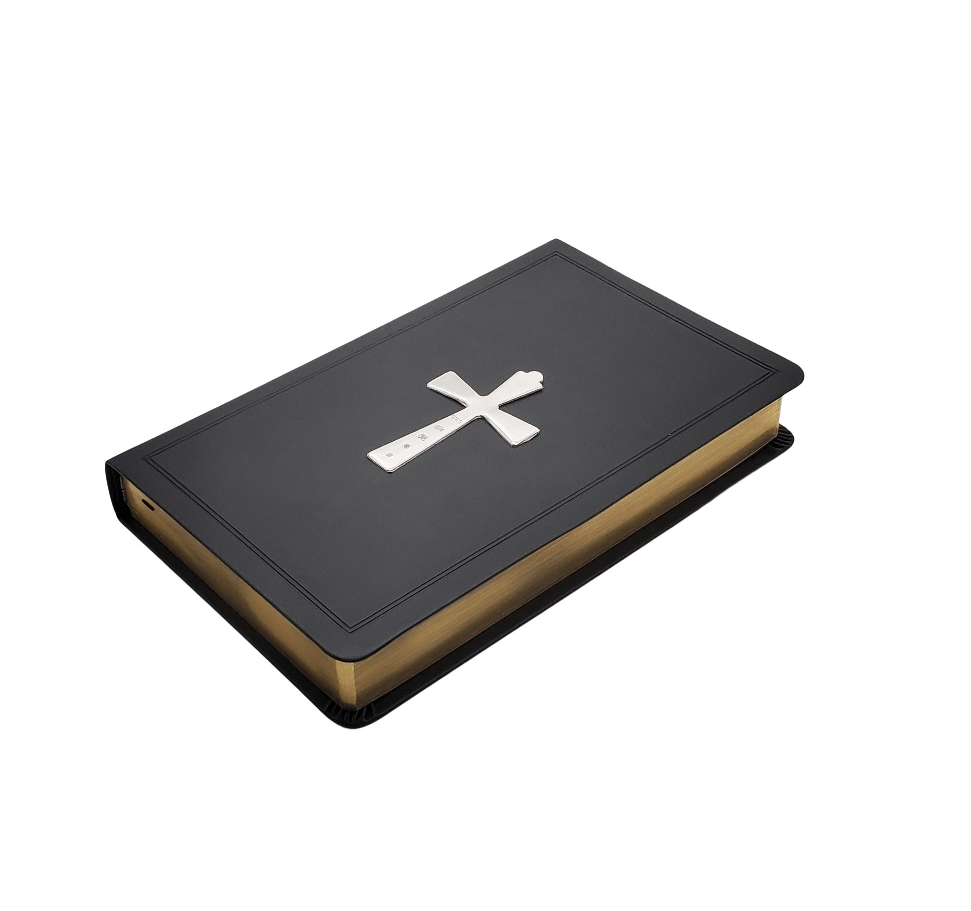 KJV Deluxe Leather Touch BLACK Bible with 3" English Sterling Hallmarked Cross. SKU #: Bible 2 Black.