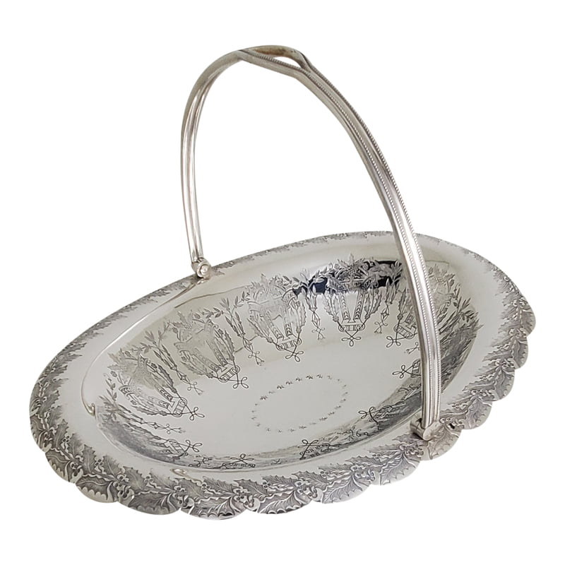 Basket Oval Engraved English Silver Plate c.1885