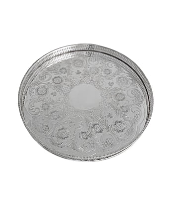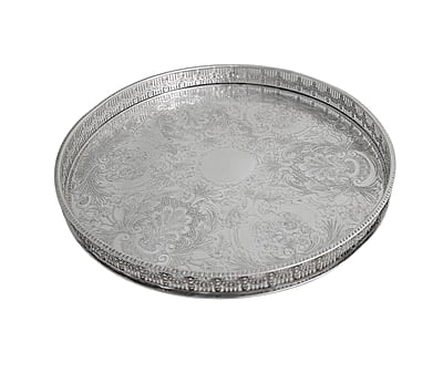 Tray with Pierced Gallery Engraved with Center Cartouche English Silver Plate c.1940.(1 ONLY) SKU:ANT4121
