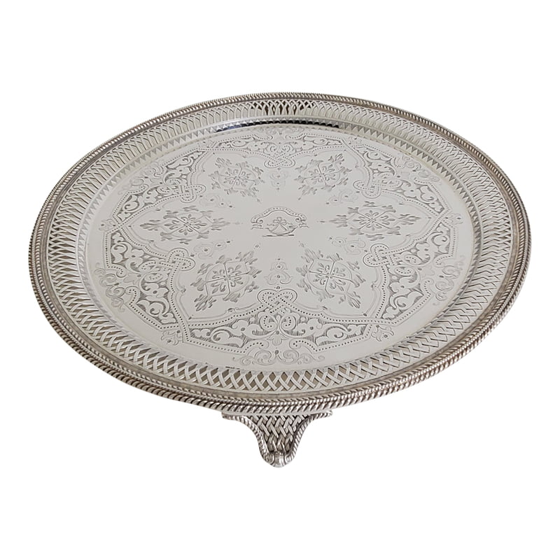 Salver 14.75" Crested Engraved & Pierced English Silver Plate c.1870