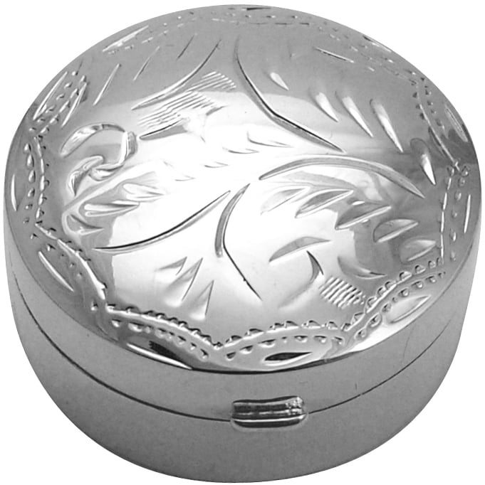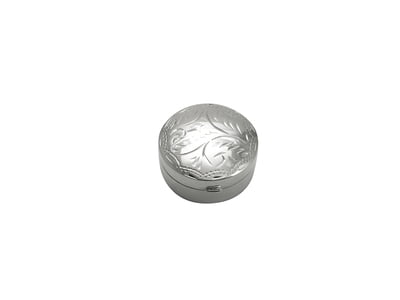 Pillbox Round Engraved Design 7/8" Diameter English Sterling Silver