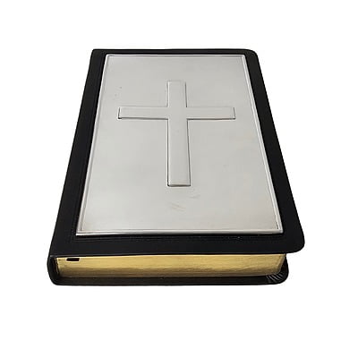 KJV Deluxe Leather Touch BLACK Bible with Full Size Engravable Pewter Plate With Cross 9" x 5.75" x 1". SKU #: Bible 10 Black.