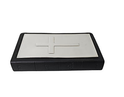 The KJV Deluxe Leather Touch BLACK Bible with Full Size Engravable Pewter Plate With Cross is a beautiful and durable Bible that is perfect for personal use or as a gift. The Bible is bound in black leather with a touch of leather that gives it a soft and comfortable feel. The Bible features a full-size pewter plate that can be engraved with a name or message of your choice. The plate is located on the front cover of the Bible and features a cross design that adds a touch of elegance to the design.