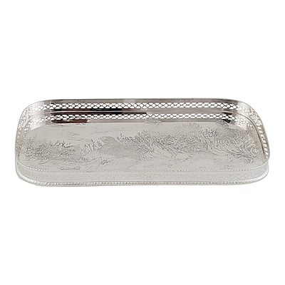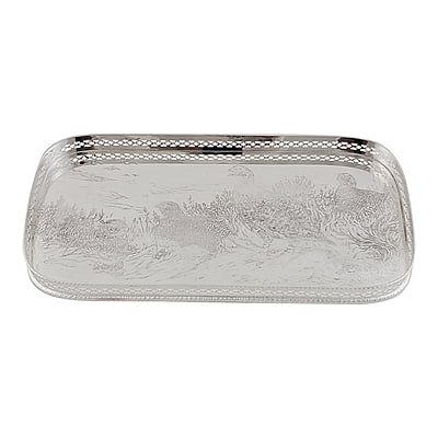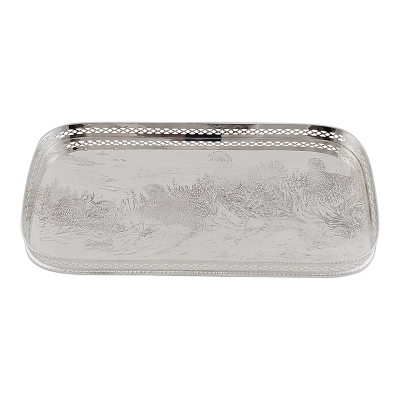 Let’s highlight the elegance of the Famous Grouse 12" x 6" Tray ,crafted in England of Silver Plate. Here’s a captivating description