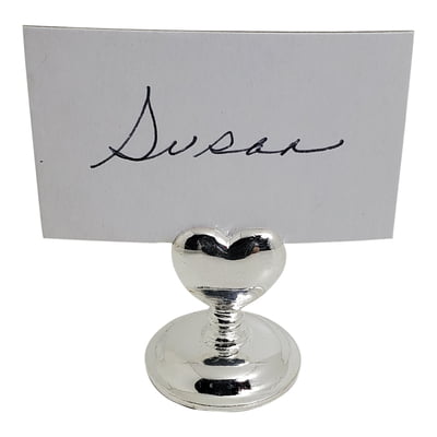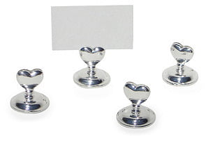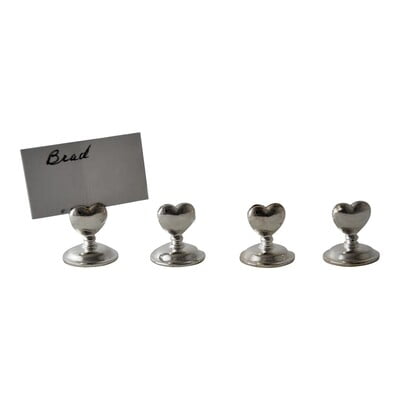 Set/4 Heart place card holders with cards Silver Plate. SKU #: KMJA116B.