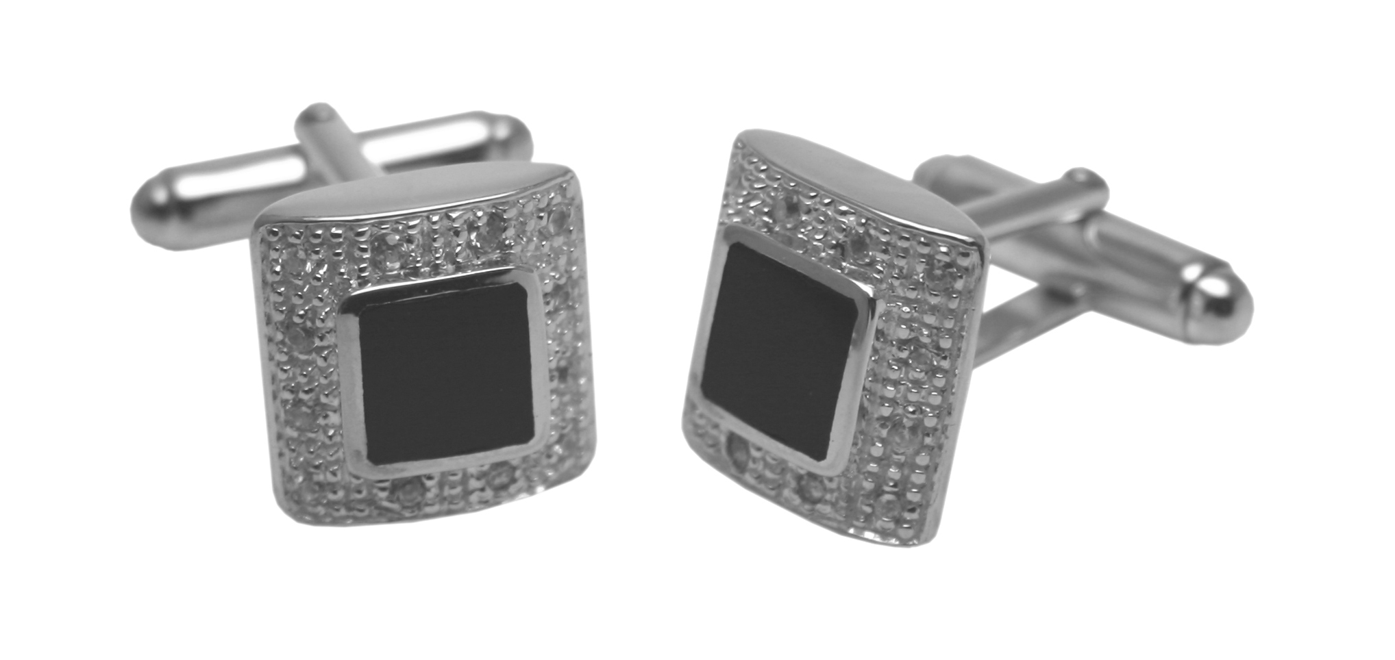 Sterling Silver Cufflinks Black Onyx with Cubic Zirconium (discontinued). SKU #: CU457.