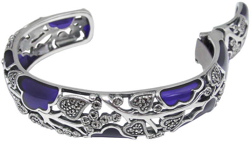 SILVER BANGLE-Blue Enamel and Marcasite. SKU #: BE415.