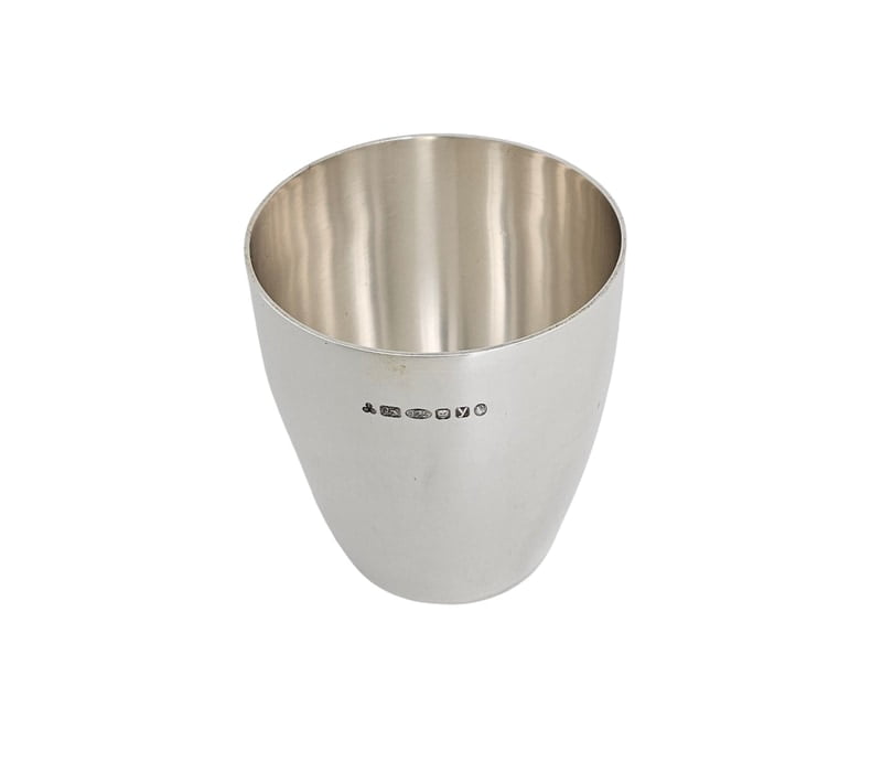 Crafted from exquisite English sterling silver, this superb julep cup embodies elegance and sophistication. Its substantial weight and impeccable craftsmanship make it a standout piece for any collection. The smooth, polished surface reflects light beautifully, enhancing its timeless appeal. Perfect for serving classic mint juleps or as a decorative item, this cup is a testament to the quality and heritage of English silverware.