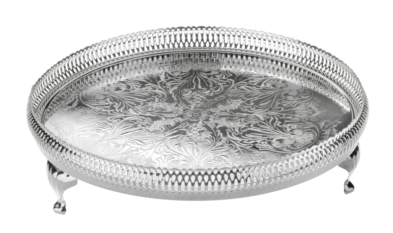 Silver Plated Round Gallery Tray with Legs 11" Diameter |