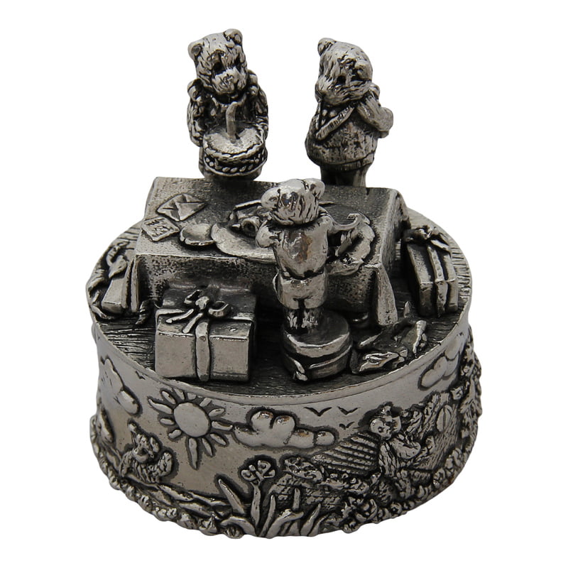 Teddy Birthday, English Pewter Box. SKU #: KM139C.