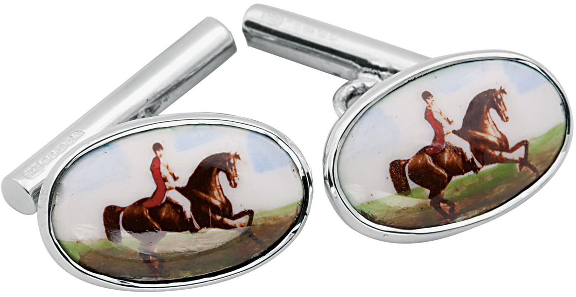 CU392 Sterling Silver Enamel Hunting Horse Cufflinks