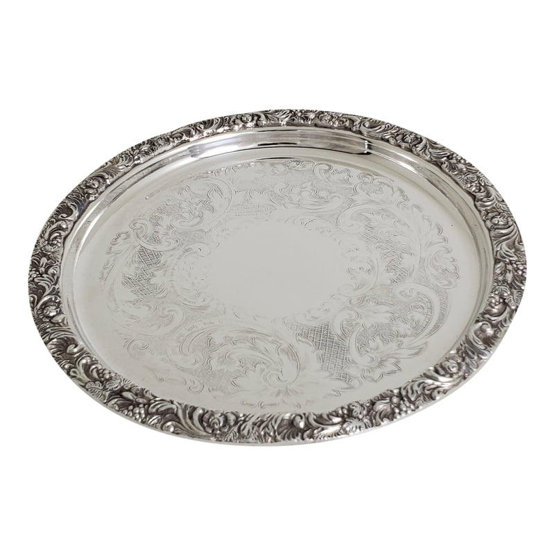 Salver 9.25" Engraved English Silver Plate c.1900. SKU #: A425.
