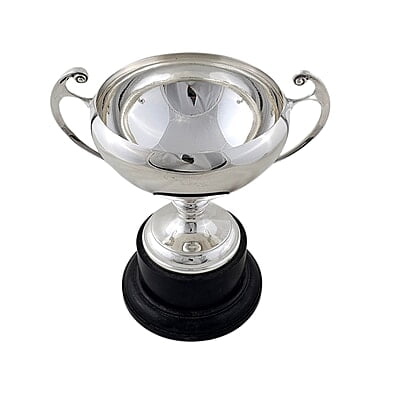 2 Handle Presentation Cup on Black Plinth English Silver Plate c.1900. SKU #: ANT3011.